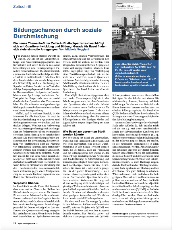Bildungschancen durch soziale Durchmischung: im Heft "vpod bildungspolitik" Nr. 212 wurde ein Artikel zur Quartierentwicklung und Bildung veröffentlicht.